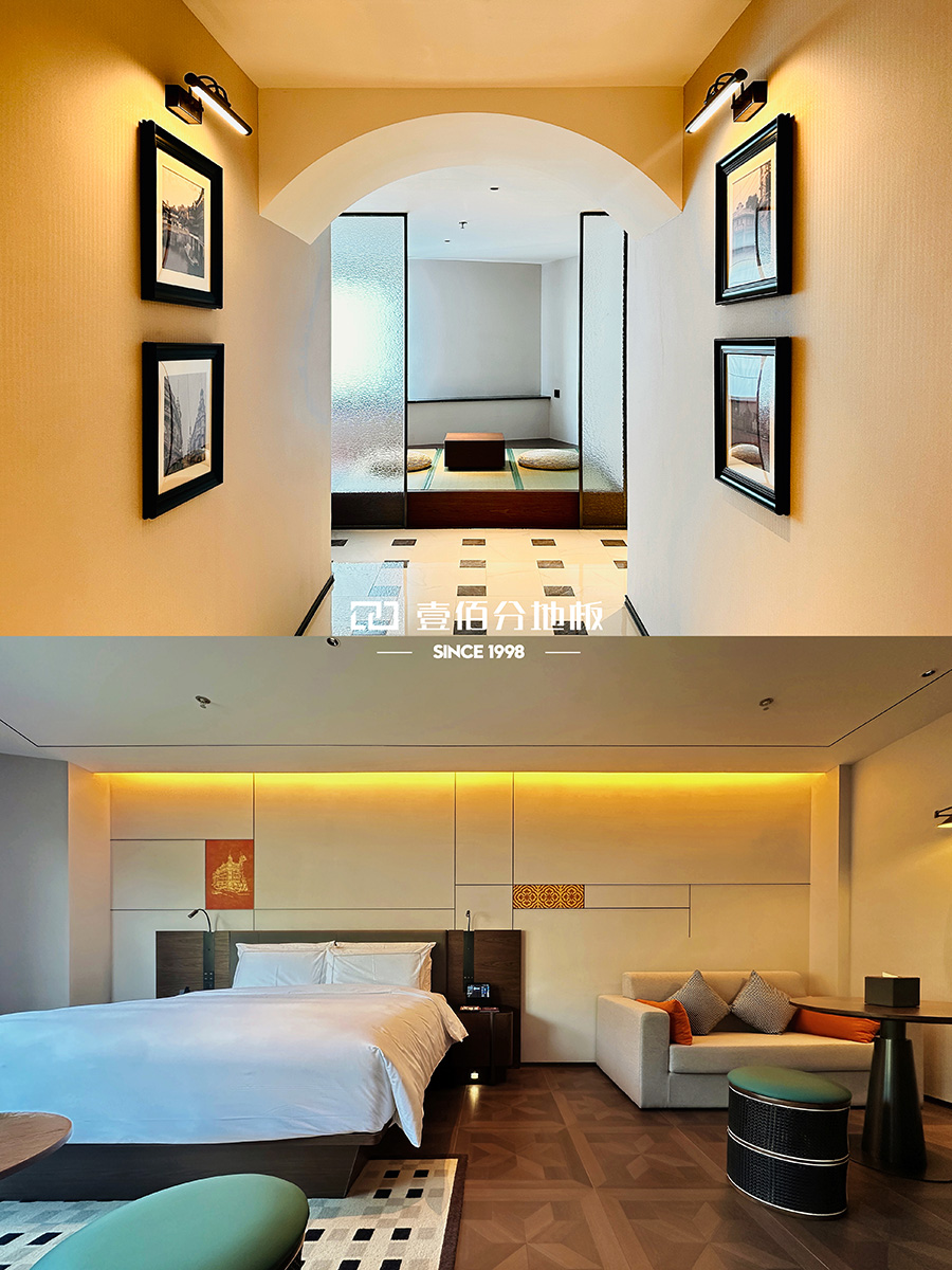 而在逸扉酒店(UrCove by HYATT)之内,「壹佰分」定制类拼花地板,正以另一种方式拼合着关于时空的叙事。