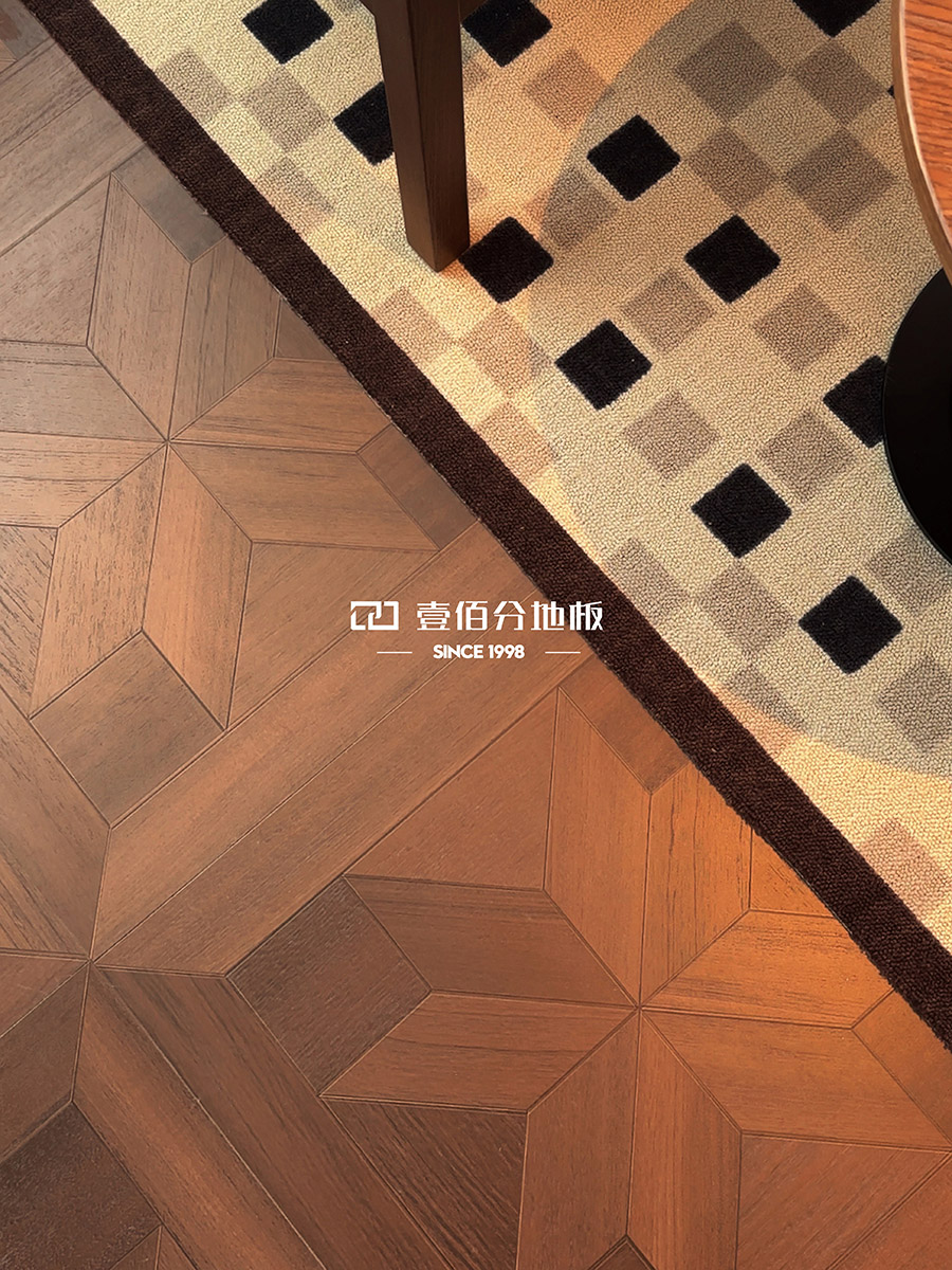 每一片拼镶的方块,都延续着统一的木纹肌理;经典的凡尔赛拼花样式自然舒展,只保留木材本真的惬意。